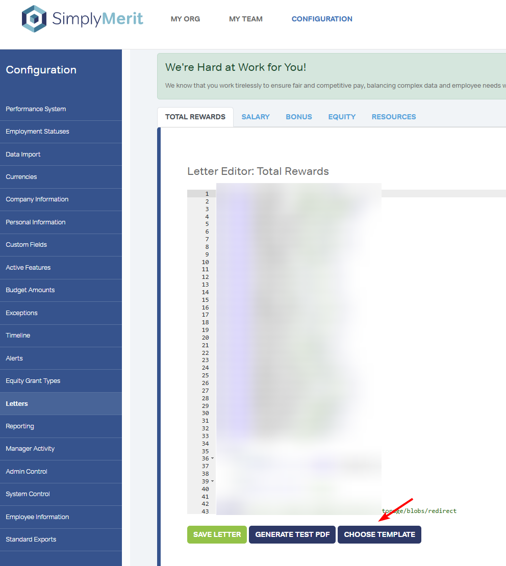 If you don’t see the Total Rewards section or the Choose Template button, ensure Enhanced Letters are turned on.