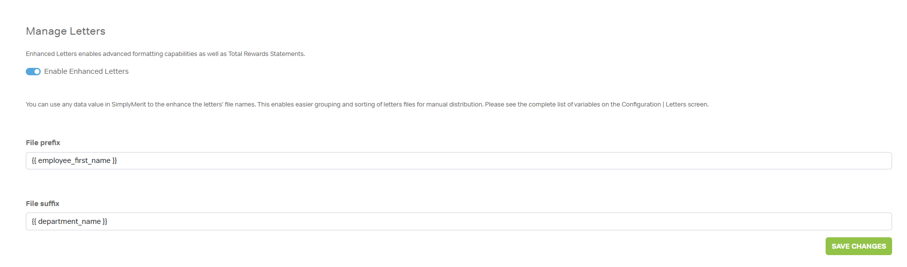 The File Prefix and File Suffix settings let you control how your downloaded letter files are named.
