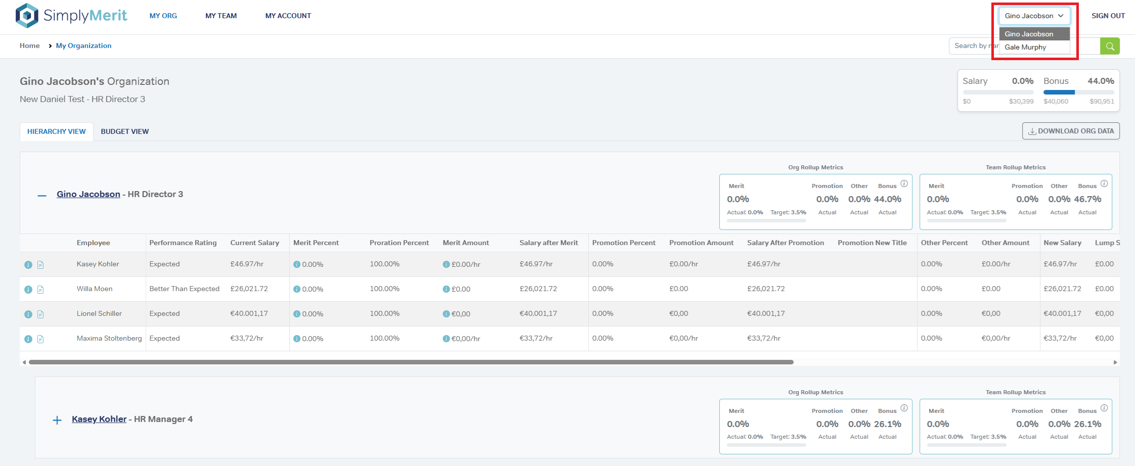 Selecting a different manager updates the data and actions available to you.