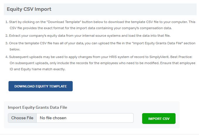 Use the Equity CSV Import to load equity grant data.