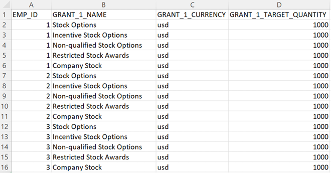 This option is best suited for organizations with a limited number of equity grant types per employee.