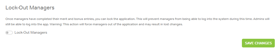 Once managers have completed their entries, admins can lock managers out of the application.