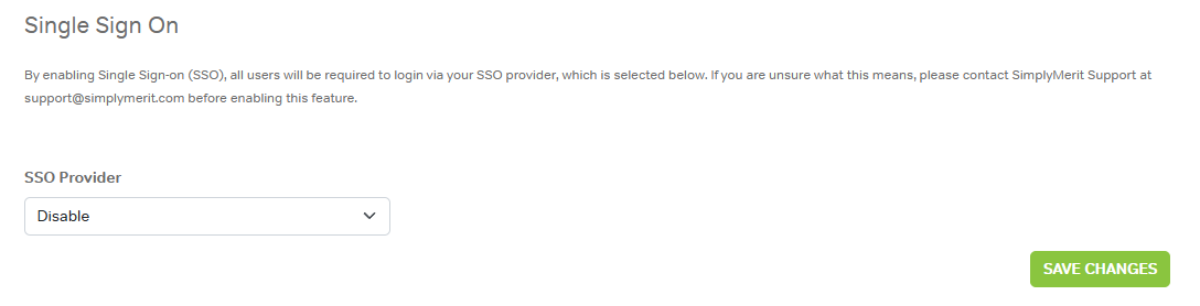 If unsure whether SSO should be enabled, contact SimplyMerit Support before activating or changing.