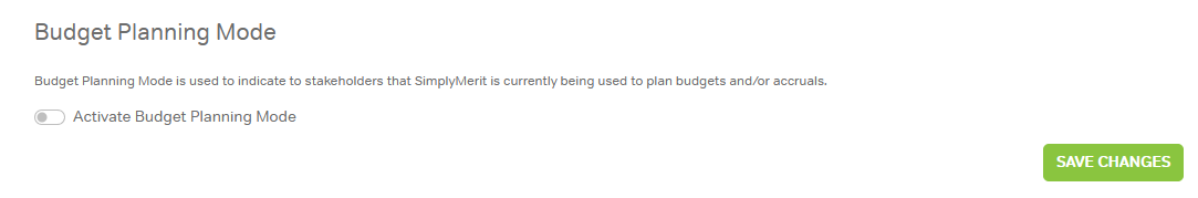 Budget Planning Mode is used to signal to stakeholders that SimplyMerit is currently being used for budget planning and/or accrual modeling, rather than active manager input.