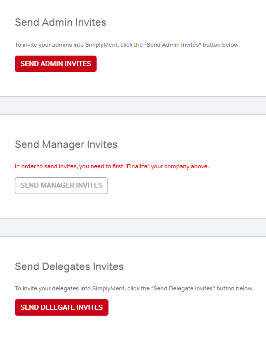 Note: The company must be finalized before manager invites can be sent.