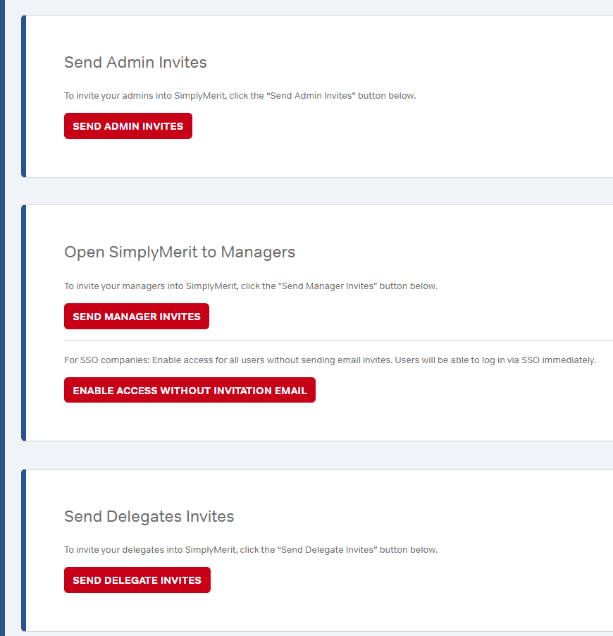 Note: The company must have the Ready SimplyMerit to Go Live toggled on before manager invites can be sent.
