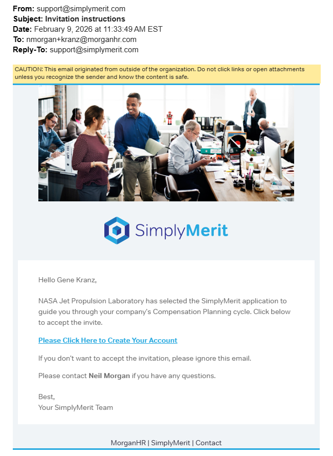 Invitation Instructions for User to Create a Password to Access SimplyMerit