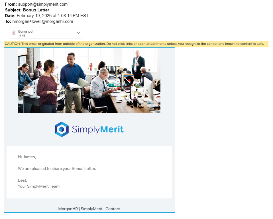 Sent when employee letters are generated and sent directly to their email.