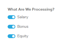 Near the top of the page, you will see a section labeled What Are We Processing? with toggle switches for: